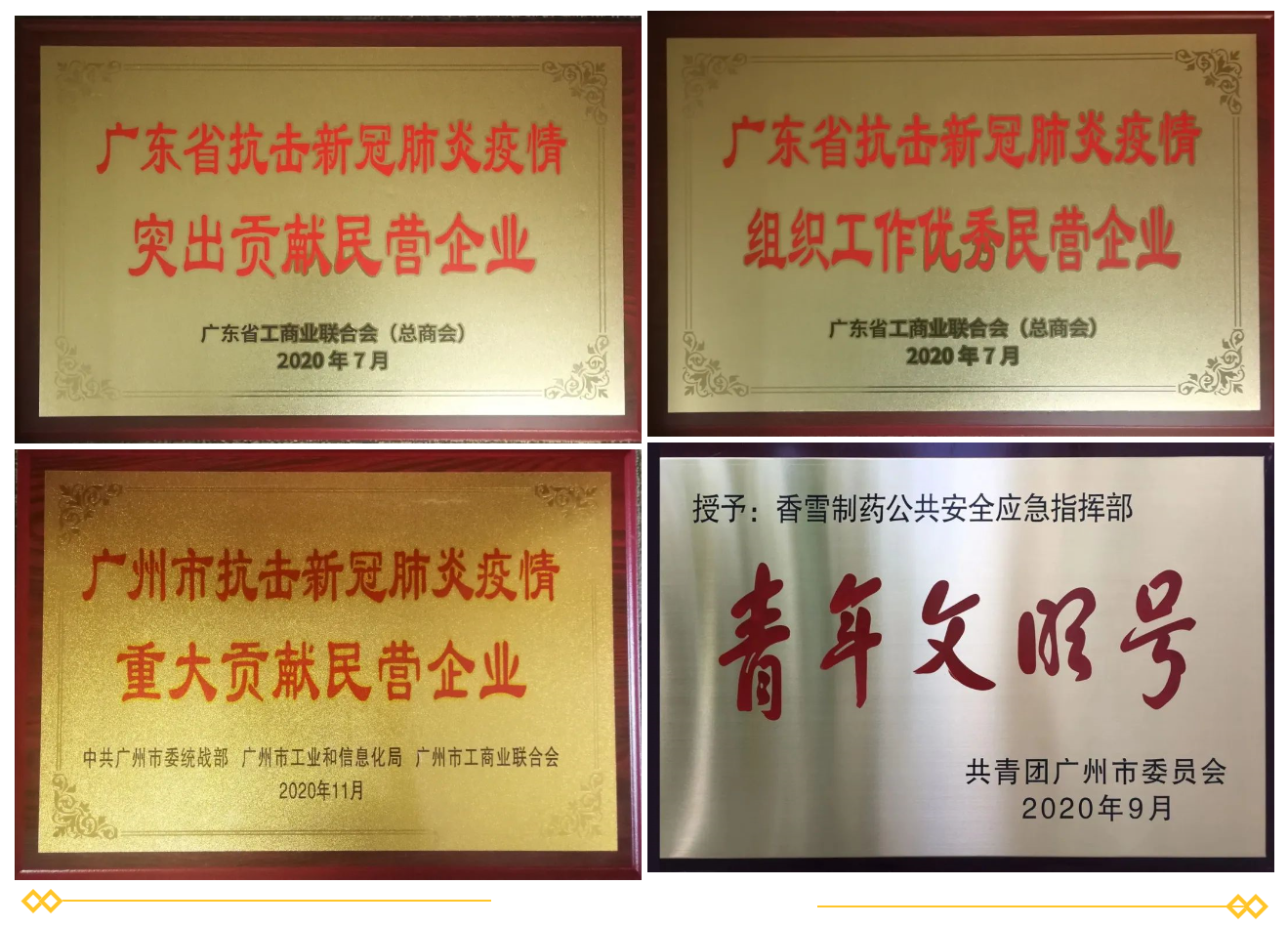 随后,先后组织向湖北、广东、湖南、宁夏等地卫生部门、学校、抗疫一线人员以及海外30个国家等捐赠抗病毒口服液、橘红痰咳液、粤抗1号等防疫物资和研发资金,累计捐款捐物超过1600万元,助力一线人员打赢疫情防控阻击战。