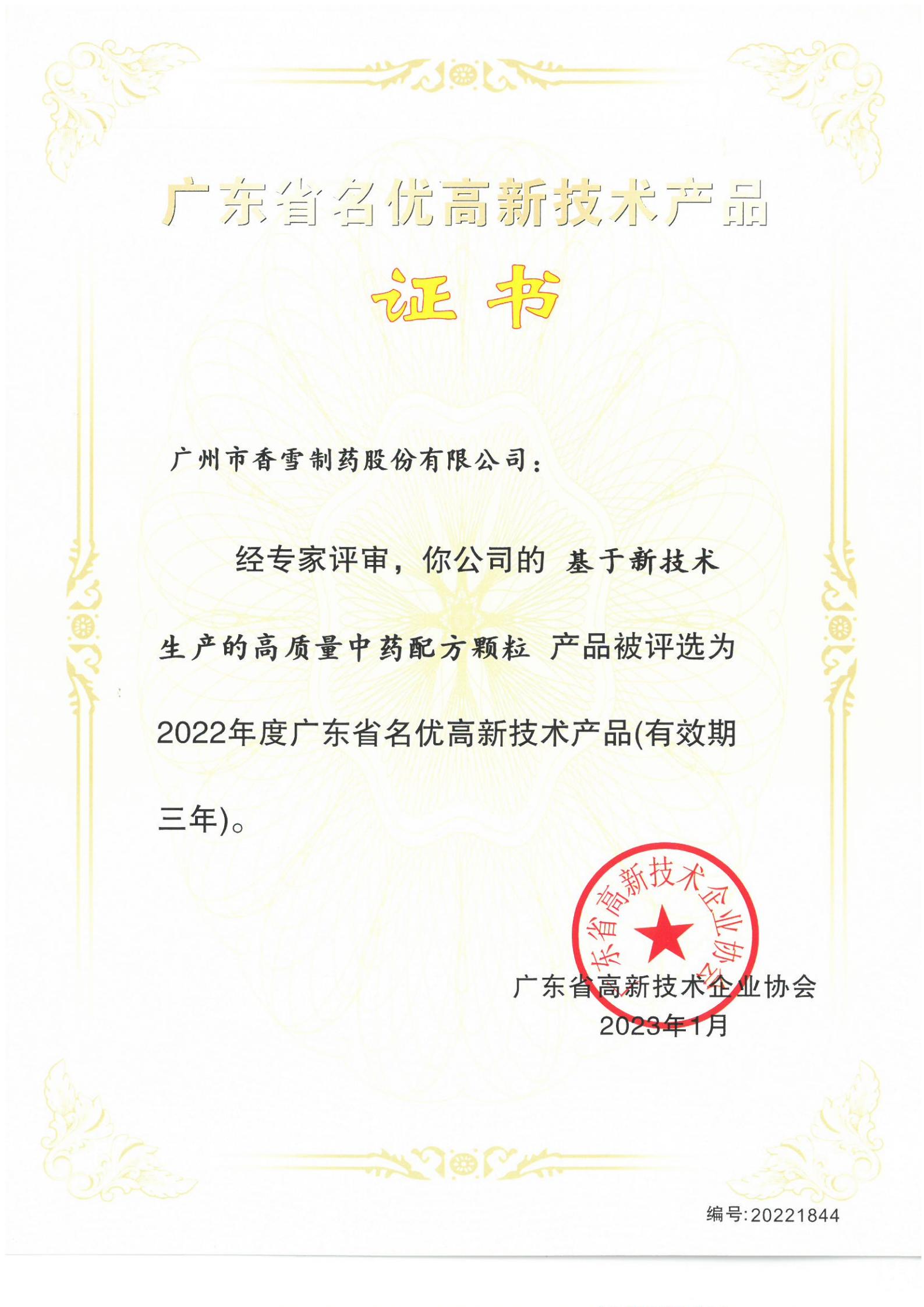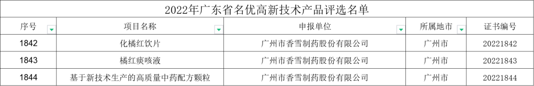 广东省名优高新技术产品——中药配方颗粒