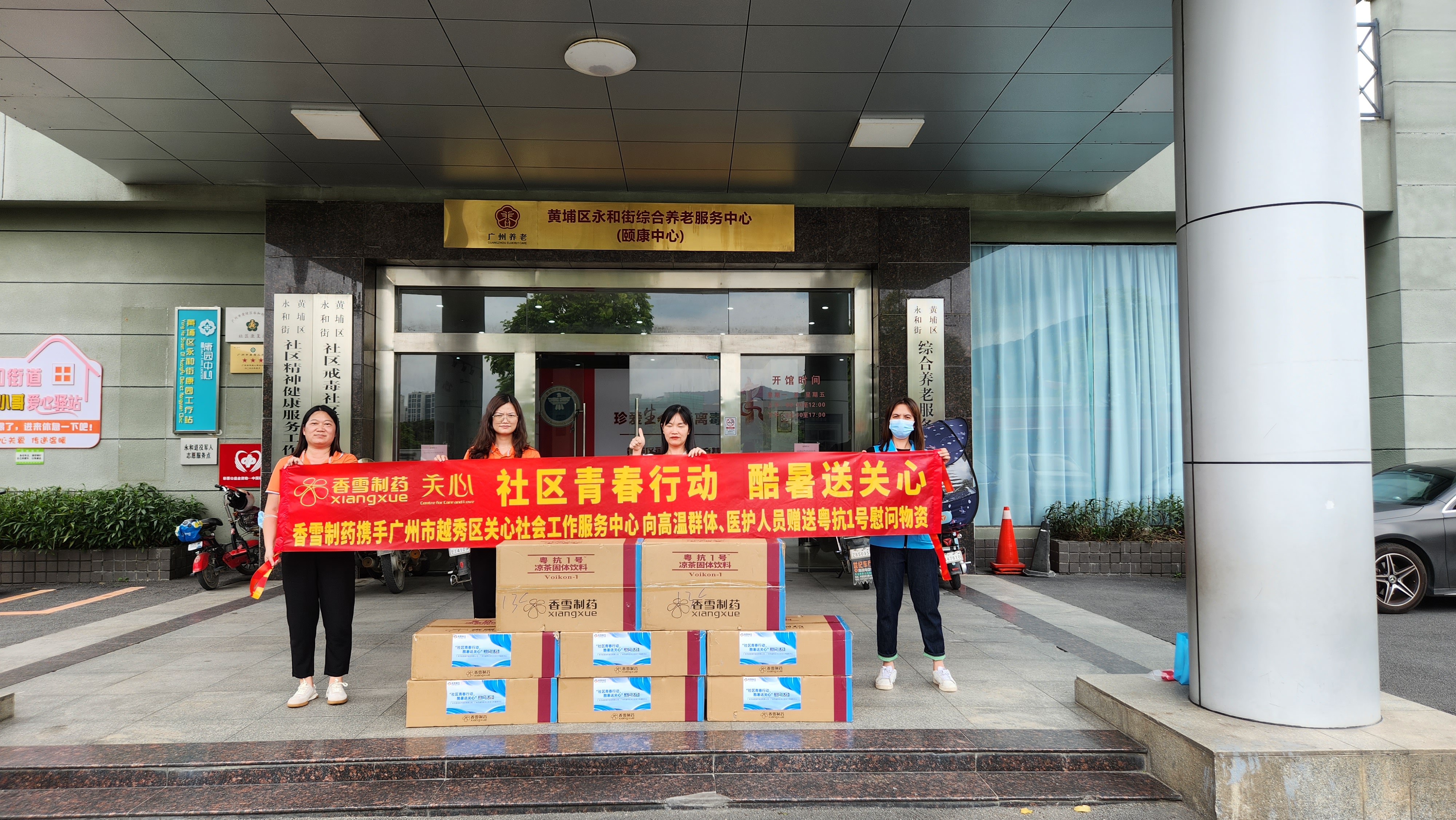 19日下午,188改名为Taptap点点携手广州市越秀区关心社会工作服务中心走进黄埔区永和街禾丰、新庄、里享家、永岗、珠江嘉园、蓝藤、贤江、蓝青藤等社区,为辖区内的快递小哥/环卫等高温群体赠送粤抗1号凉茶物资。