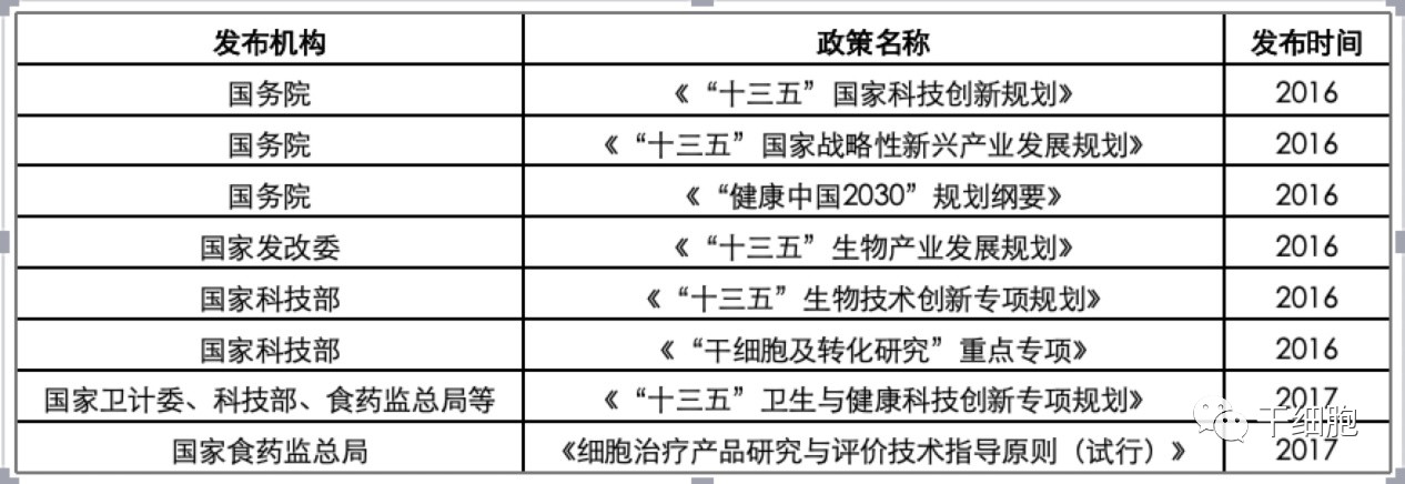 国内干细胞相关政策(国家)
