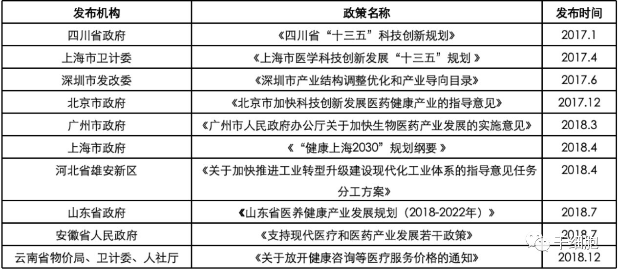 国内干细胞相关政策(地方)