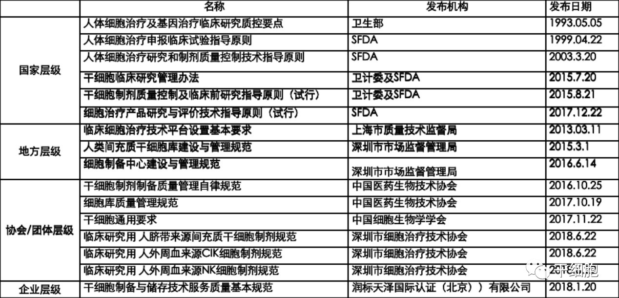 在此之前,为适应我国干细胞、免疫细胞储存产业发展需要,加强细胞库质量管理,促进行业自律,中国医药生物技术协会自2015年12月初开始,历经近两年时间、经过多次研讨、几易其稿,先后听取意见、修改30余次,起草了《细胞库质量管理规范》,该规范根据现行的《中华人民共和国药品生产质量管理规范》和其他相关法规的要求,参照中国医药生物技术《干细胞制剂制备质量管理自律规范》和《免疫细胞制剂制备质量管理自律规范》急其他相关管理规定制定,目的是为了规范细胞存储机构的质量管理。该规范给出了在细胞从入库、冷冻、深低温保藏到出库的完整过程中防止病源微生物的引入和传播、避免污染、交叉污染、混淆、差错等风险控制措施,旨在确保细胞库的质量管理符合预定的用途和要求,保持贮存细胞的生物学效用和功能。