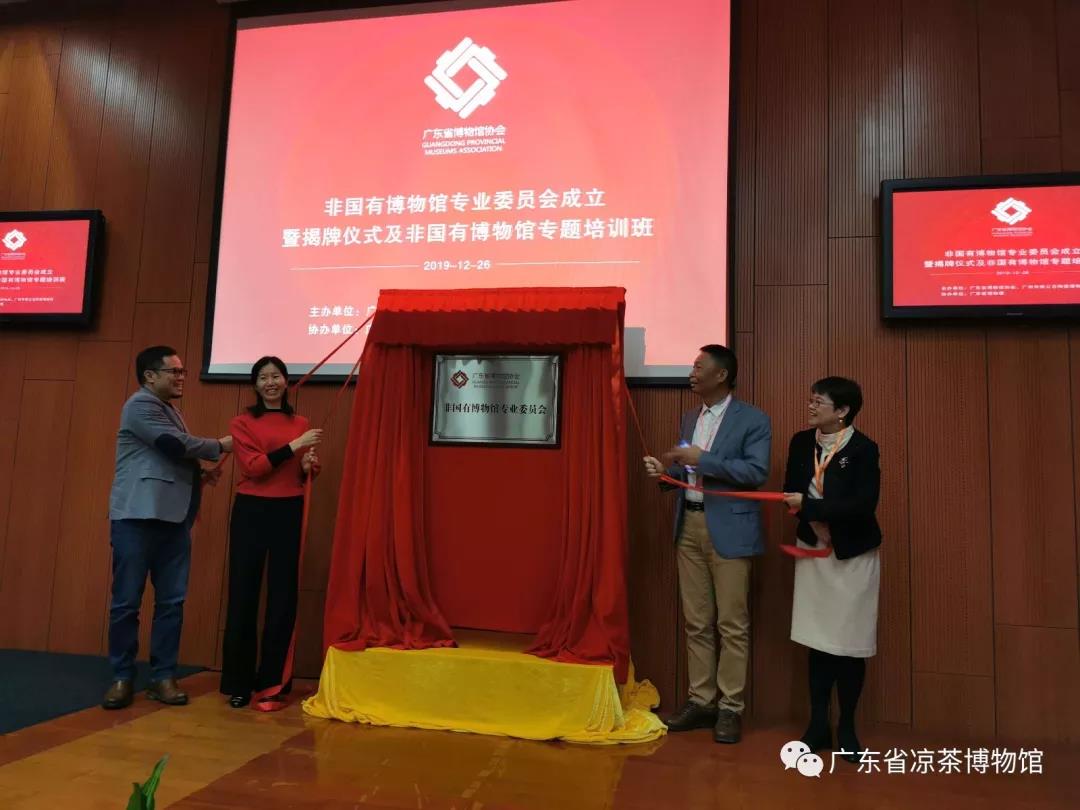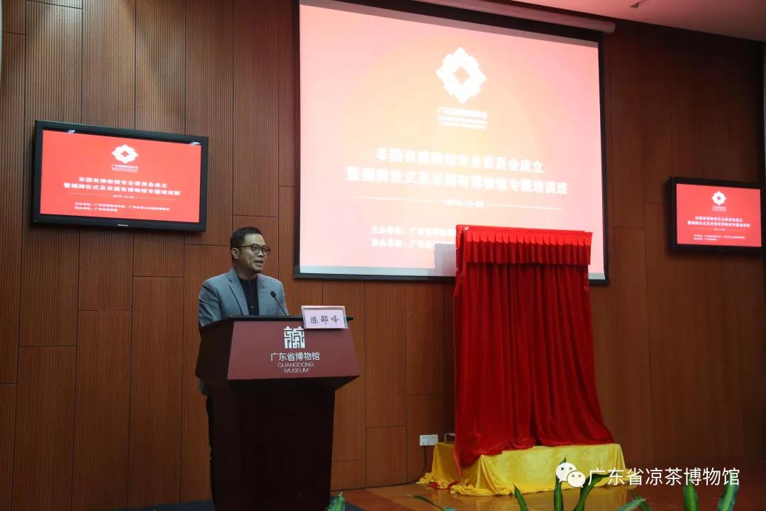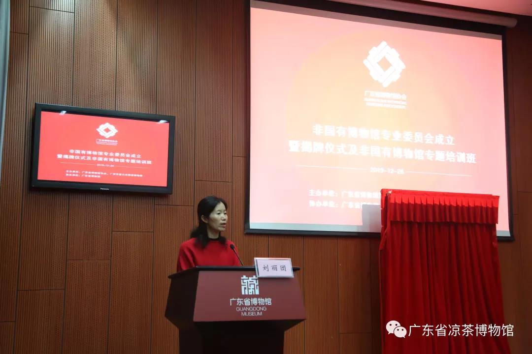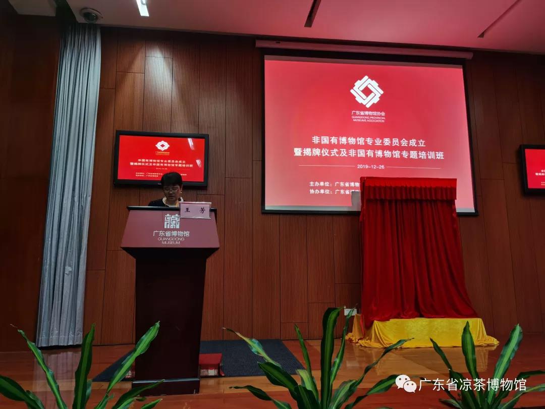 12月26日上午,广东省博物馆协会非国有博物馆专业委员会(以下简称“专委会”)在广东省博物馆召开成立大会。广东省文化和旅游厅博物馆与社会文物处副处长刘丽团,广东省博物馆协会理事长陈邵峰到会致辞并为专委会揭牌,会议由广东省博物馆协会秘书长王芳主持。全省各地市非国有博物馆馆长、代表、文博行业专家80多人出席会议。作为专委会会员单位之一,广东省凉茶博物馆两名代表出席会议,其中博物馆负责人作为专委会委员出席第一次委员代表会议。