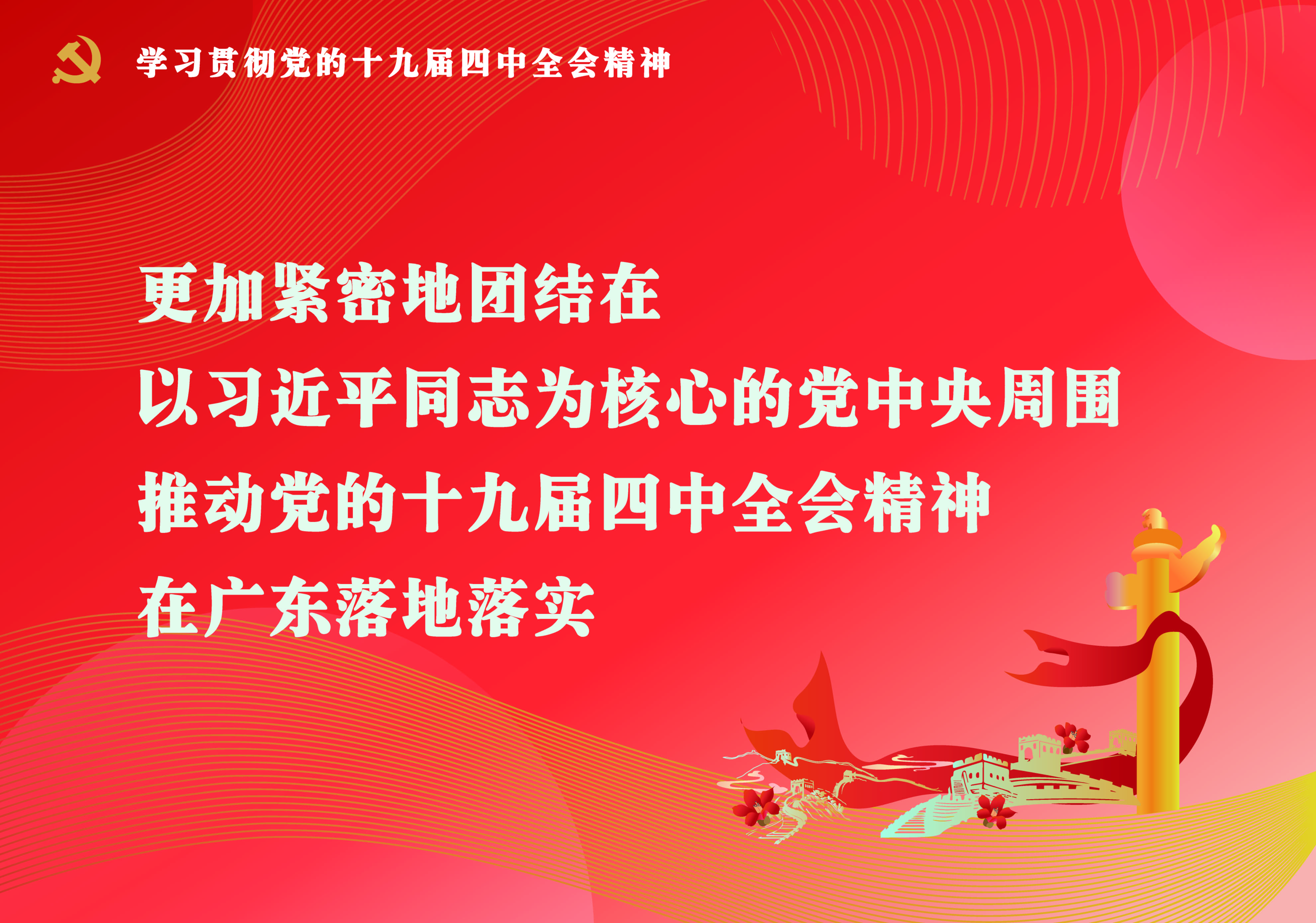 更加紧密地团结在以习近平同志为核心的党中央周围,推动党的十九届四中全会精神在广东落地落实